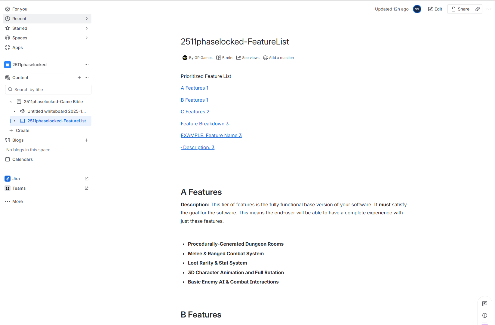 Confluence Space: Maintains Feature List, meeting notes, changelog, and feature lists, ensuring team alignment and knowledge retention.