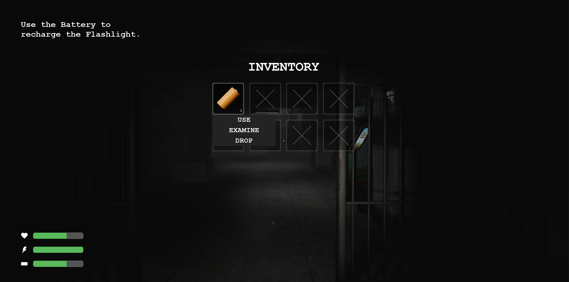 Inventory System: The 8-slot grid with 'Use', 'Examine', and 'Drop' functionalities was designed to be easily expanded with new item types, inspired by the system depth of Resident Evil.