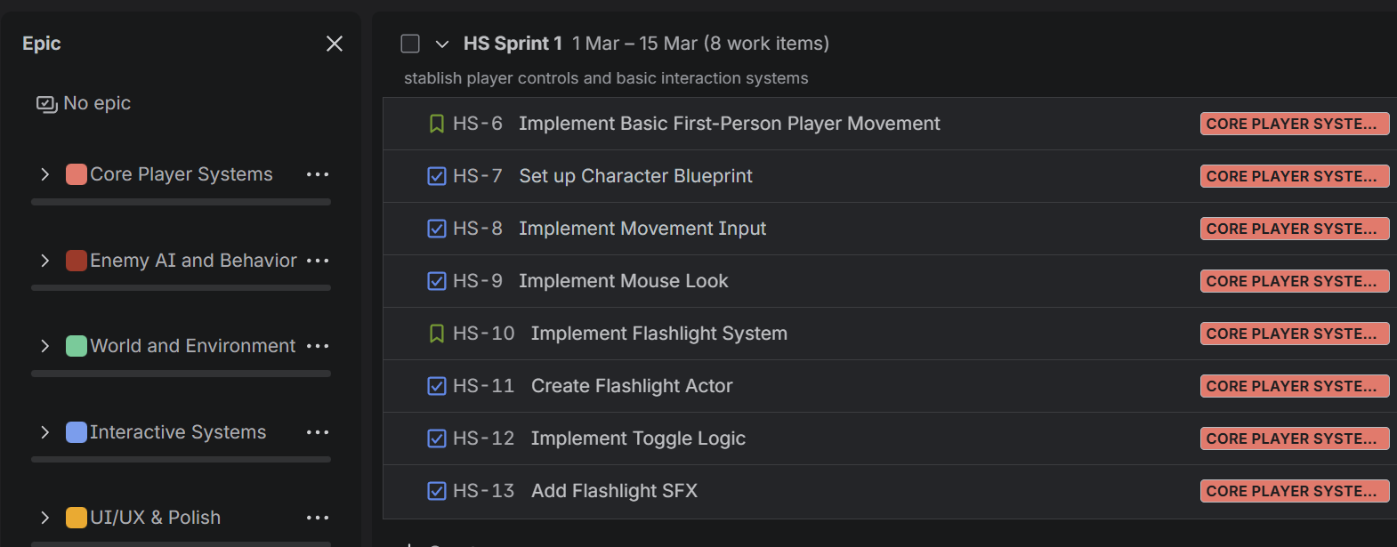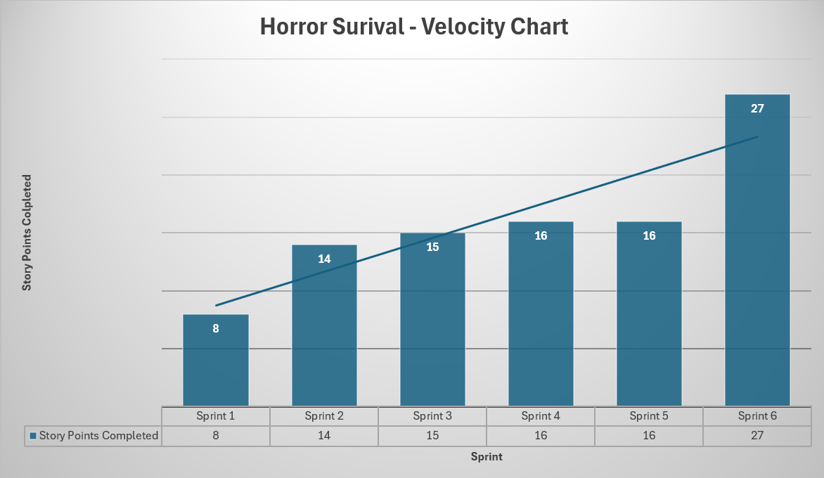 Key Decision: Prototyping the enemy AI in Sprint 2 de-risked the core horror mechanic early, ensuring the project vision was achievable.