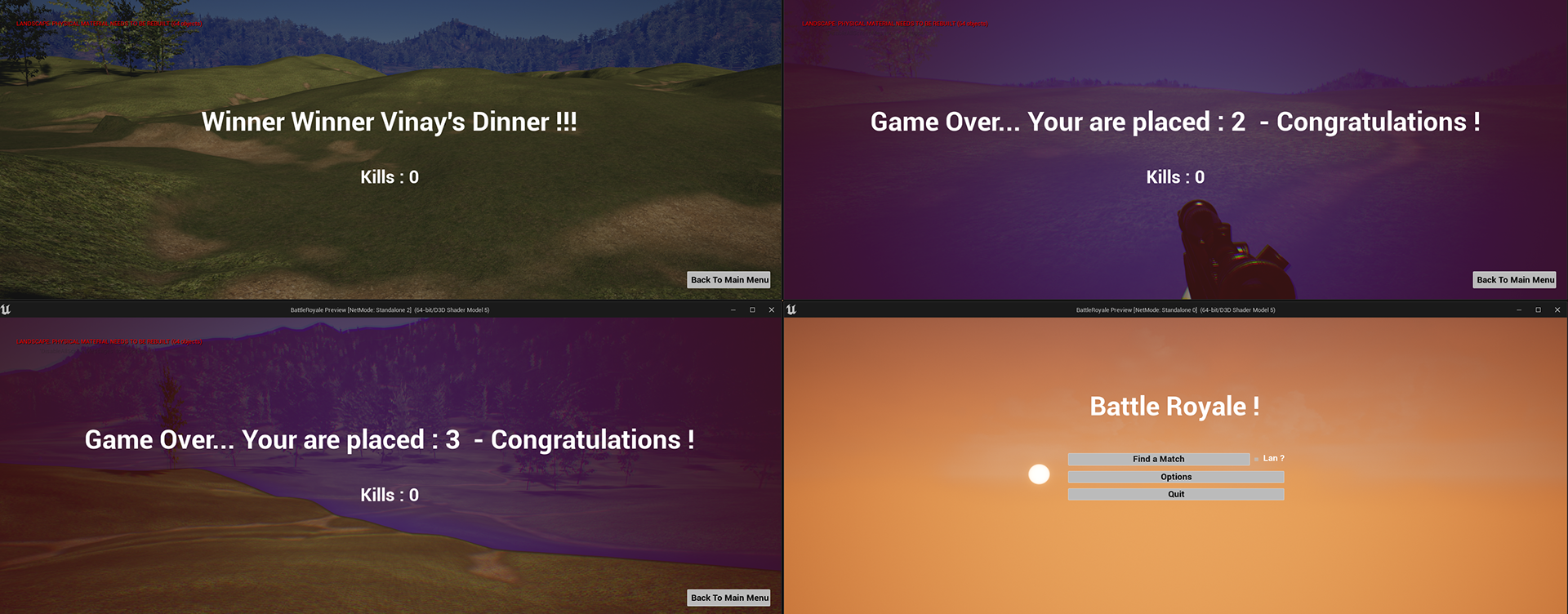 Challenge: Managing the state transition between the menu, lobby, and game was a significant challenge. I learned to architect robust game state machines in Blueprints, ensuring UI, player controllers, and game modes communicated effectively without errors.